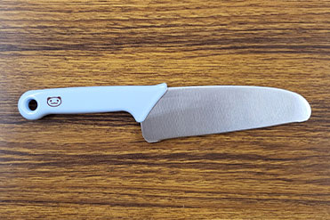 4・5歳児の手にもしっかり握れるプラスチックハンドル。ステンレス製の本格刃先は丸みを持たせた安全設計。きちんと切れるので皮むきや薄切りにも挑戦しよう。自分たちでつくった料理はいつもよりもっとおいしい!