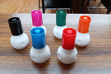 子供の手にピッタリのたまご型。滑り止めのえくぼがあるから力がしっかり入ります。色は子供がわかる原色、赤、ピンク、オレンジ、青、緑、黒の6色。インクは安全性の高い水性インクを使用。ふたは飲み込んでも窒息しないよう工夫されています。